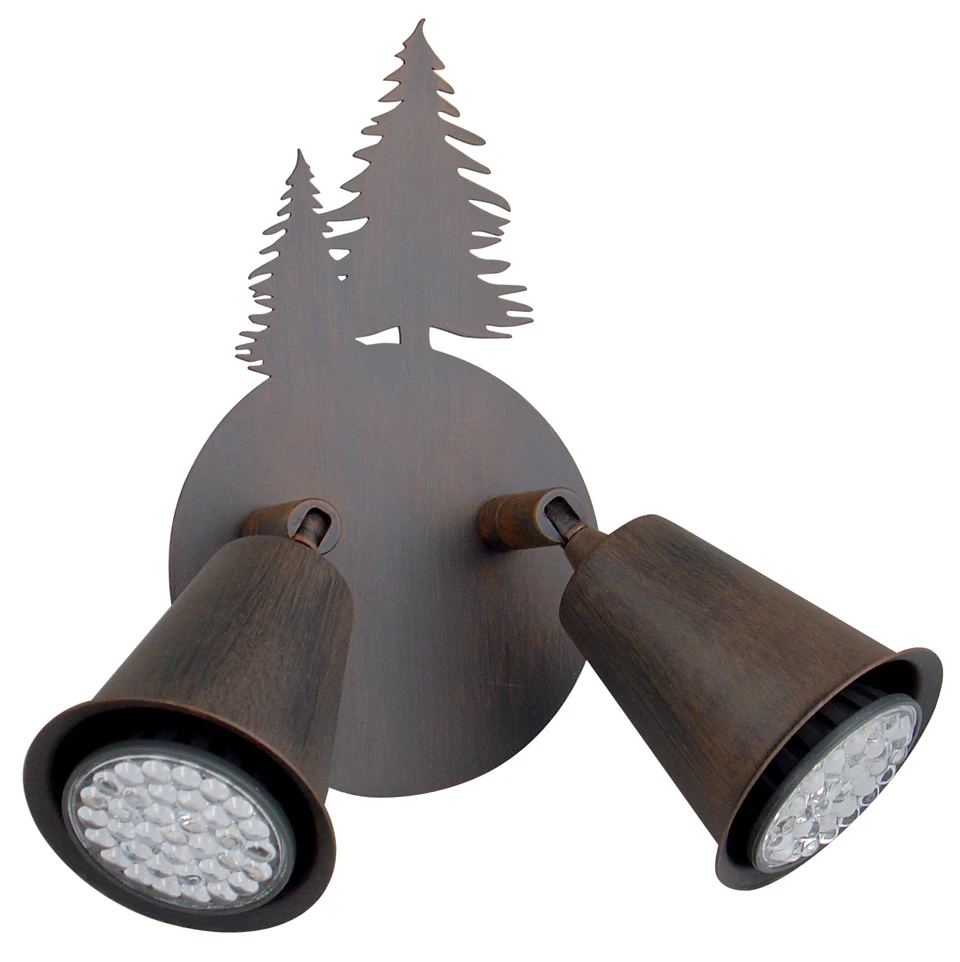 Applique 2 Spots Sapins En Métal Patiné Montagne