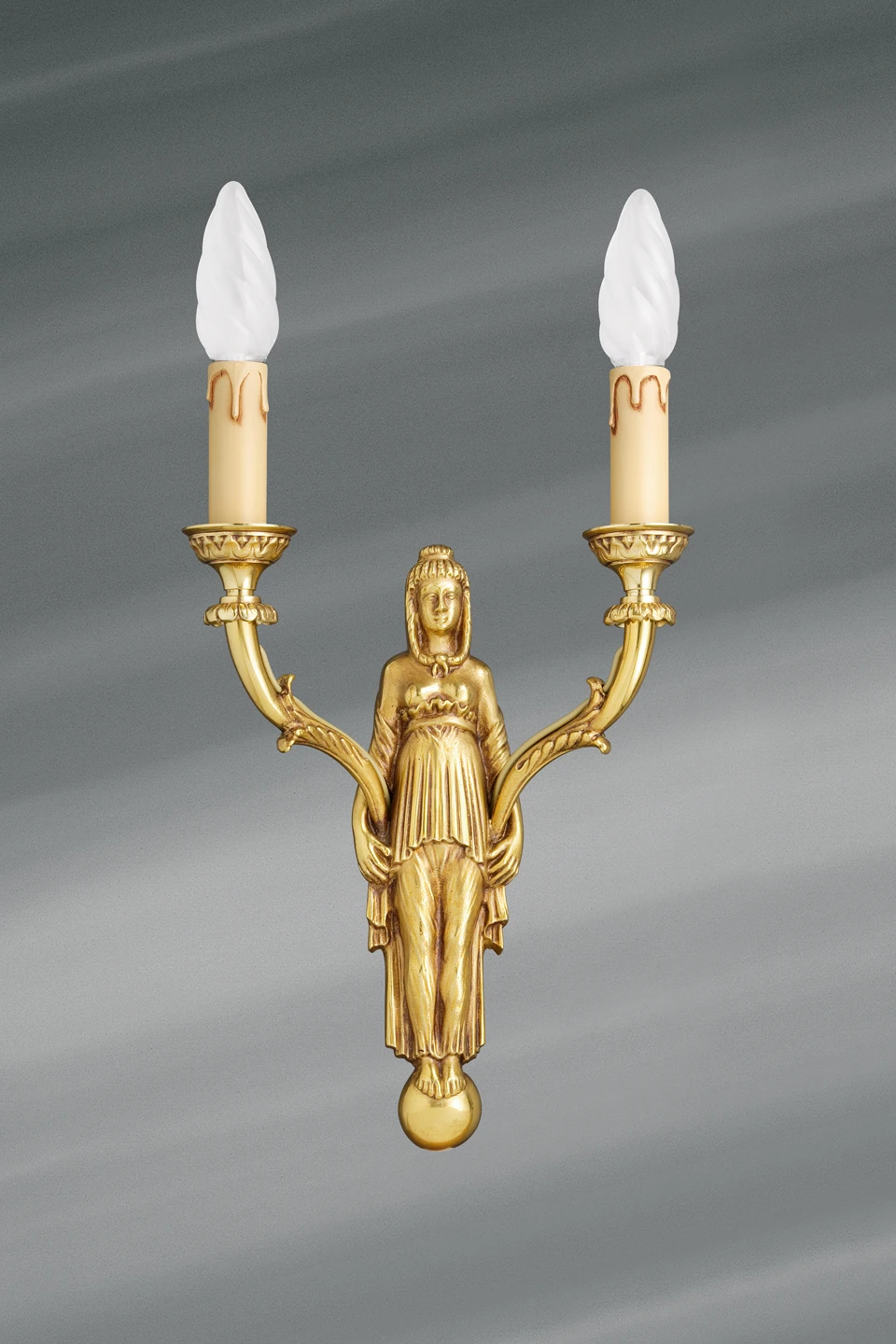 Grande originalité pour cette applique sculptée, de style Directoire, en bronze massif, au dessin peu commun d’une femme au corps drapé et élevée par les deux bras, or vif, portant lumières. Le travail de détail est admirable pour représenter la Liberté, symbolique forte de l’époque Directoire reprenant la thématique révolutionnaire. Le travail de cette applique est exceptionnel. Il est le fruit du savoir-faire séculaire des artisans de la maison Lucien Gau qui se transmettent leur secret depuis six générations.