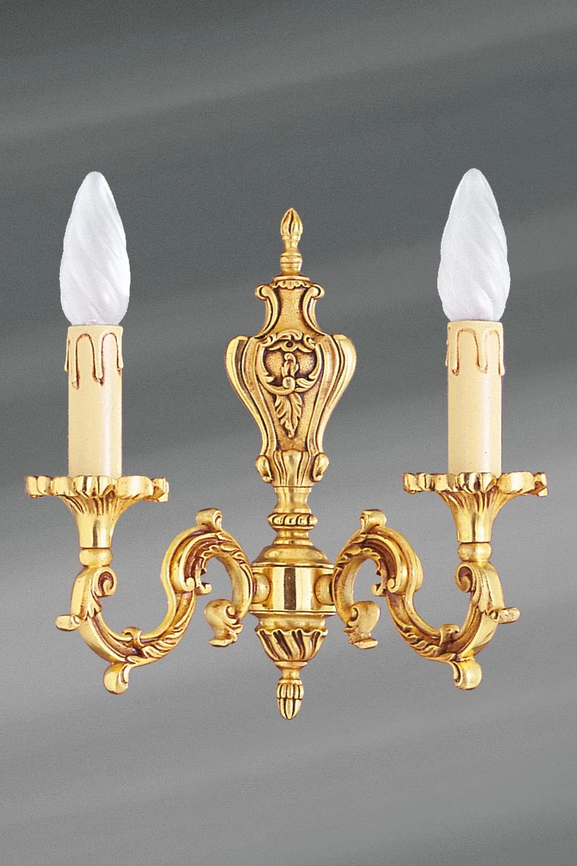 Majestueuse, cette applique Louis XV est munie d’un support mural en forme de demi-vasque et décoré d’un motif en feuilles d’acanthe formant écusson en son centre. Les deux branches, en double volute, sont décorés d’un motif assorti. Cette applique n’est pas munie de bobèches. Elle est ornée, à la base de chacun de ses bougeoirs, d’un bassin sculpté dont la face supérieure est plate. L’ensemble, d’une élégance parfaitement équilibrée, bénéficie d’une réalisation exemplaire, par les artisans d’art de ce fabricant français. Cette applique murale est réalisée en bronze massif moulé et travaillé à la main. Une patine vieil or est appliquée. Il existe un modèle similaire, aux motifs ornementaux plus fournis, sous la référence 12020273.
