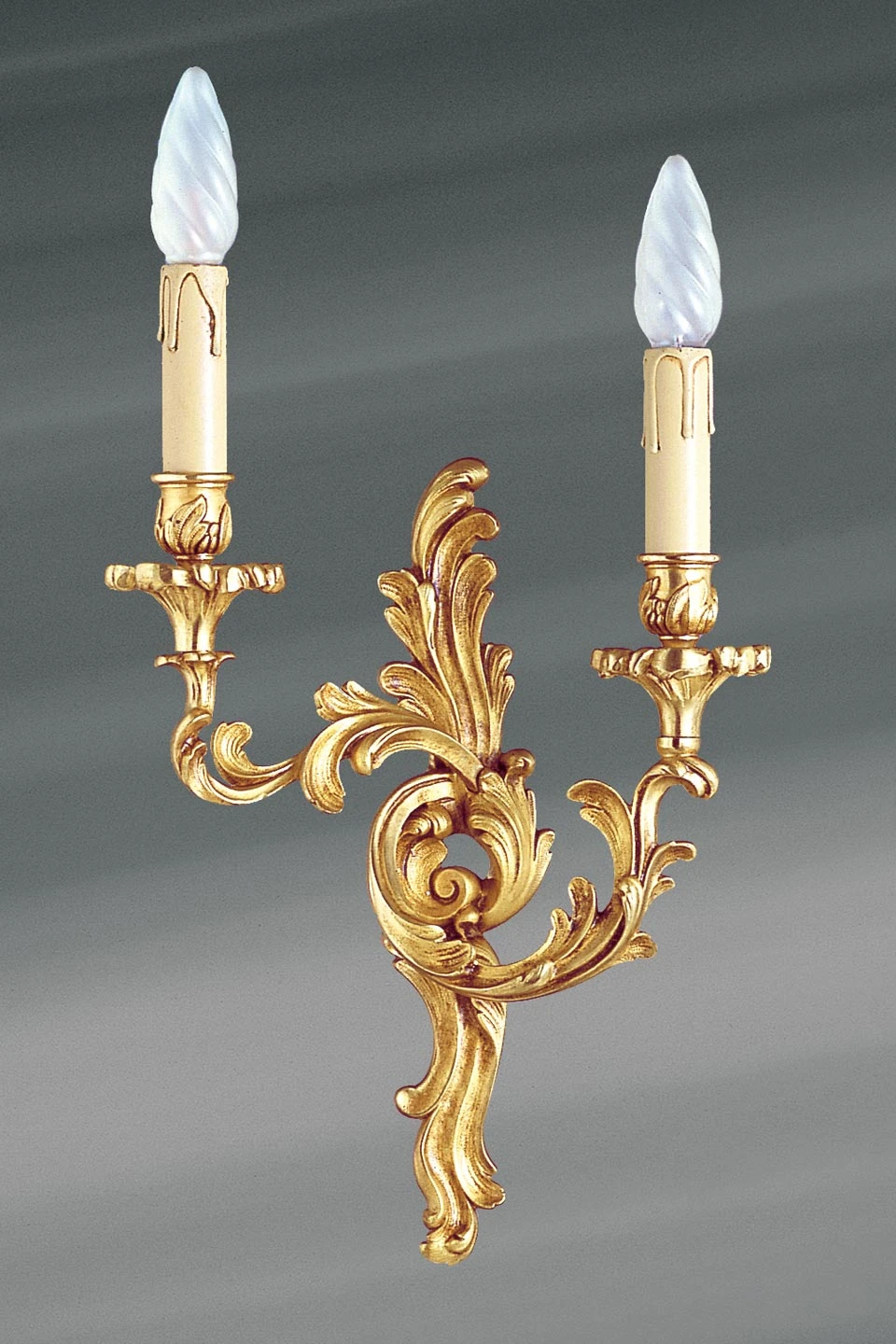 Cette délicate applique Louis XV est formée d’un support mural sculpté en feuilles recourbées, qui se prolonge dans un ravissant mouvement en spirale par deux branches finement travaillées, portant bougeoir à leur extrémité. Les bassins, coupelles placées à la base des bougeoirs, sont sculptées de façon à ce que leur face supérieure soit rigoureusement horizontale, ce qui interrompt le mouvement des branches et apporte un surcroît d’équilibre à cette applique. La réalisation, d’une qualité magistrale, est effectuée selon les méthodes les plus traditionnelles, en France, dans les ateliers de Lucien Gau. Il existe dans la même collection plusieurs appliques murales Louis XV, à trois lumières (références 12020228, 12020248 et 12020254), à deux lumières (références 12020230, 12020247, 12020255 et 12020258), à une lumière (12020259, 12020281) ainsi qu’un ravissant modèle à deux lumières avec miroir ovale (12020278).