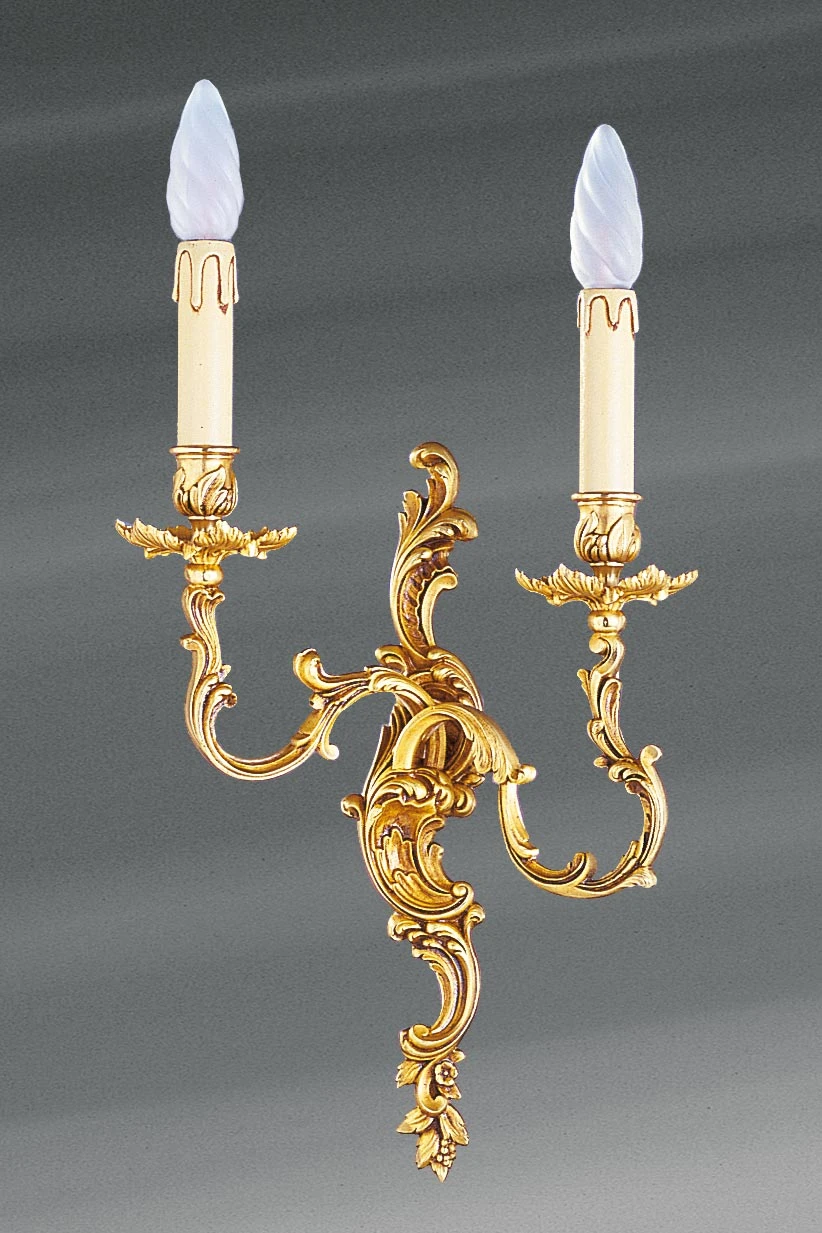 Applique Murale Louis XV En Bronze Massif Vieil Or Deux Bougeoirs