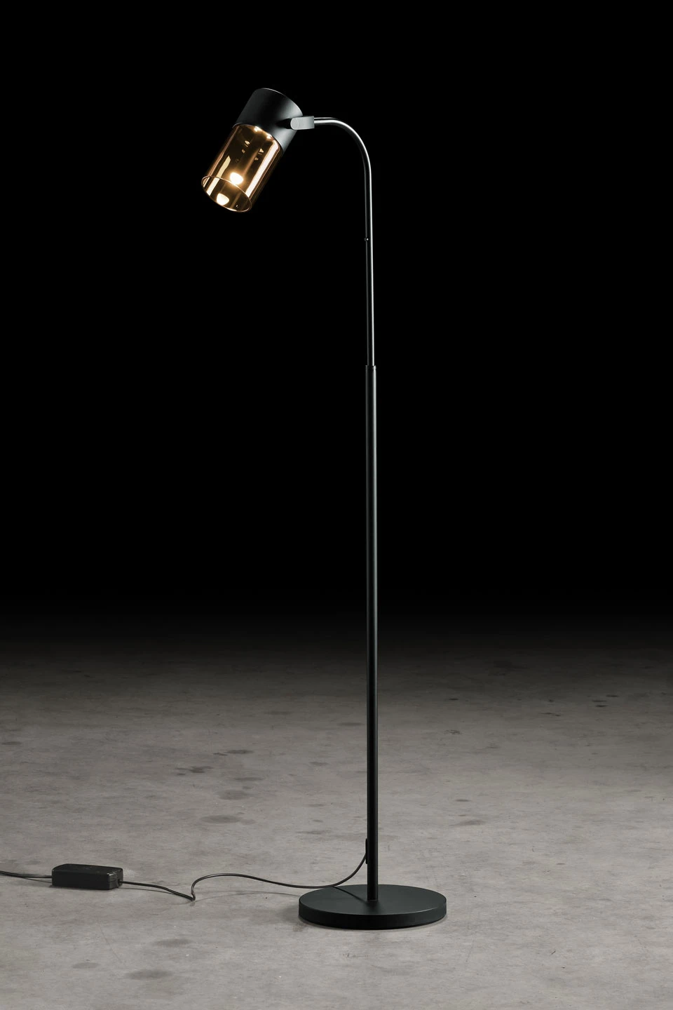 Une variété de combinaisons de finitions avec l’élégante collection au design contemporain Aura, ici le lampadaire-liseuse en métal finition noire mate, diffuseur en verre soufflé Cognac et éclairage LED intégré. La tête de lampe est composée d’un diffuseur en cylindre de verre couleur cognac monté sur un cadran permettant d’orienter la lumière, fixé sur un socle rond et un pied en L inversé télescopique, le tout en métal avec une superbe finition noire mate. Sobre et épuré, ce modèle est équipé d’un variateur à pied sur le cordon électrique du luminaire, qui permet d’adapter la température de couleur de la lumière en fonction de l’usage, de 1800K pour une lumière d’ambiance à 2900K pour éclairer un travail de précision. Fondée en 1964 et marquée par son dévouement à la qualité, la maison familiale Holtkotter est une des dernières entreprises allemandes à manufacturer ses luminaires de A à Z, du métal brut au produit fini, avec une recherche permanente d’intégration des innovations technologiques sans jamais renoncer à la qualité de ses luminaires.