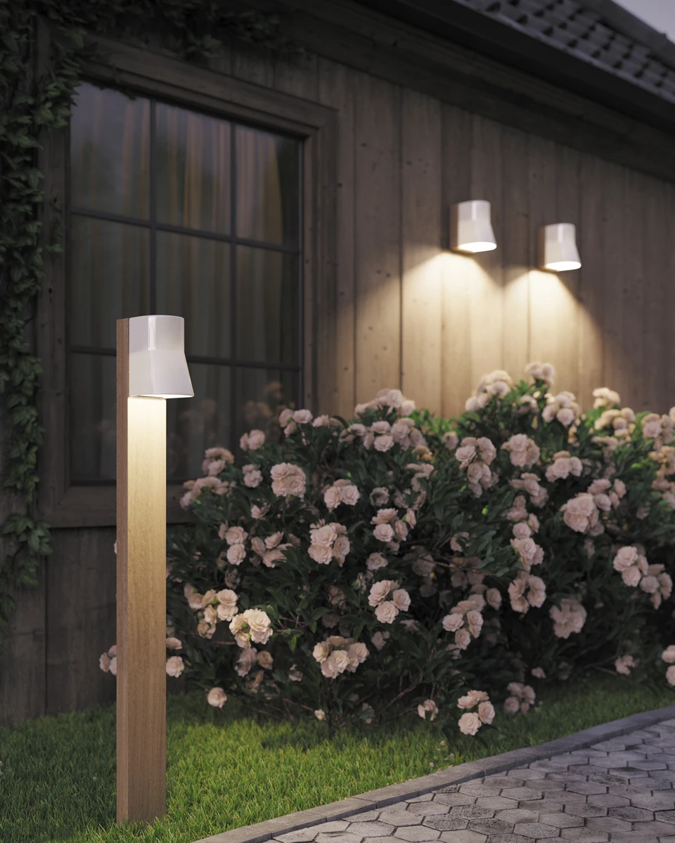 Balise De Jardin Porcelaine Blanche Et Teck Beacon