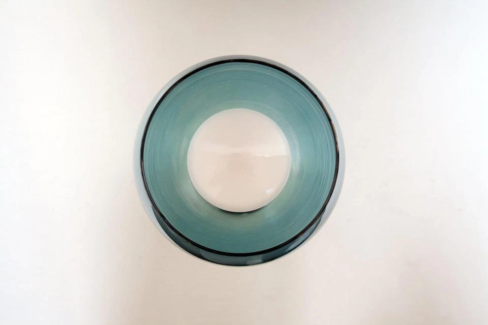 La série Boogie propose avec ce modèle un spot compact et rétro, qui joue avec le contraste des matières et couleurs, ici l’abat-jour en bulle de verre bleu turquoise, coupé en bas, est monté sur un cache-douille et un U en métal qui permet l’orientation du spot, sur une platine de mur ronde en métal. L’ensemble de la structure est en finition doré mat, qui contraste avec le turquoise du verre. Le globe en verre offre une lumière colorée.