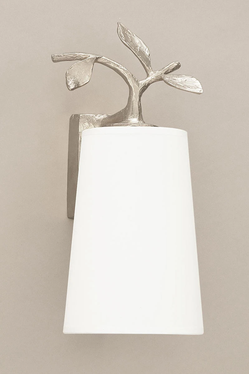 Dolce apporte une touche végétale et poétique à votre intérieur, c’est une applique en bronze massif argentée et abat-jour blanc. Le modèle est composé d’un support mural rectangulaire surmonté d’un bras qui prend la forme d’une jeune pousse d’arbre divisée en 3 courtes branches et agrémentée de 3 feuilles. Dolce est doté d’un abat-jour conique allongé en chintz écru, et le bronze est travaillé d’une finition nickel satiné, une finition argentée obtenue par un travail de polissage du bronze créant un contraste entre les arrêtes rendues brillantes et les creux naturels du métal laissés mats, ensuite magnifié par une fine couche de nickel appliquée à l’électrolyse (le nickel privilégié à l’argent car celui-ci a tendance à s’oxyder rapidement).