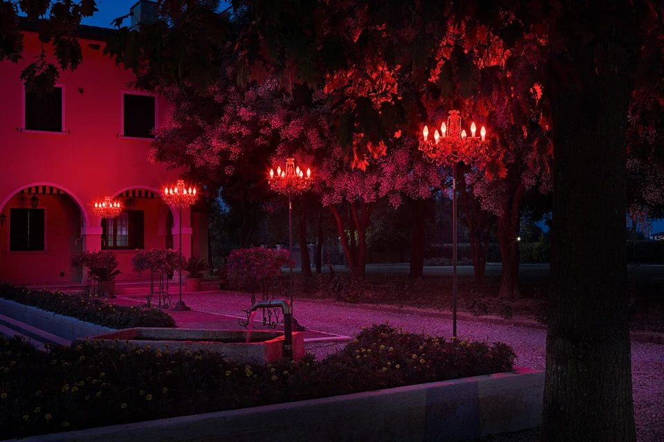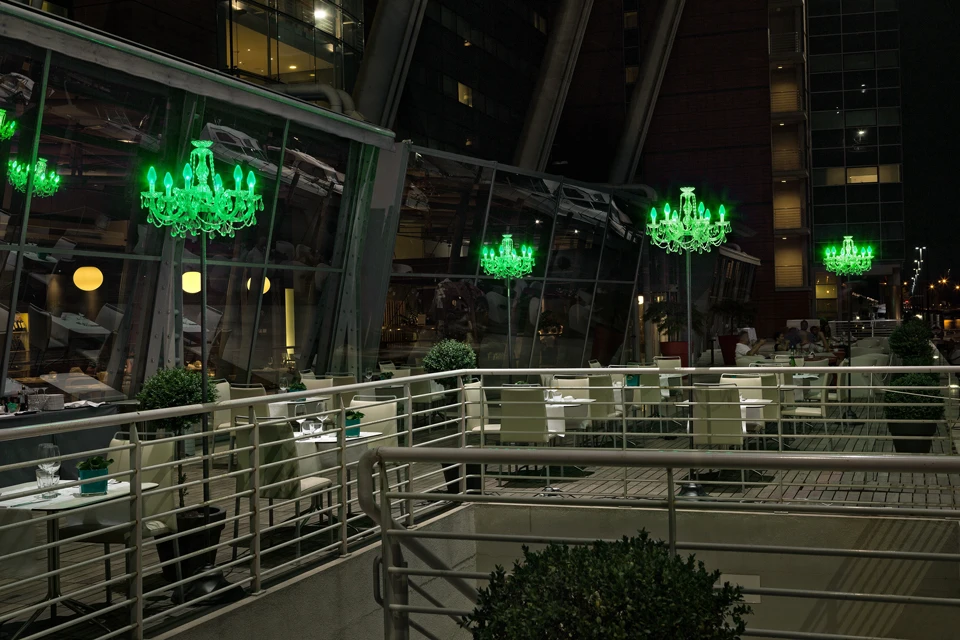 Comme vous pouvez le voir sur les photos secondaires, le modèle est également disponible en version LED RGBW dans les options de commande au bas de cette page, associé à une télécommande qui permet de faire varier l’intensité et la couleur de la lumière, ainsi le même lustre peut être rouge, bleu, vert. La collection comprend un lustre disponible en 6, 12, 18 et 24 lumières sous les références 22010100, 22010102 et 22010104, 22010107 ainsi qu’une lampe d’extérieur sous la référence 22010109.