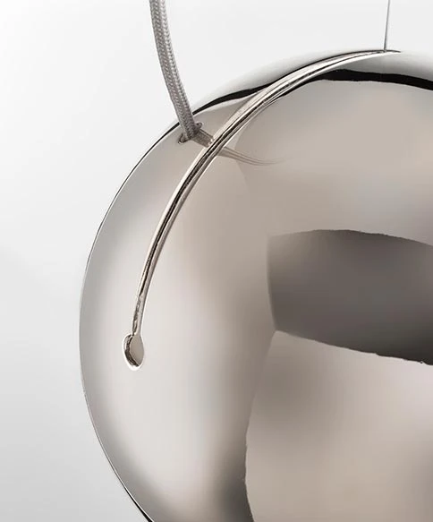 La suspension Globo a une présence astrale, avec sa boule en céramique dont la superbe finition platine est obtenue grâce à un procédé artisanal de projection de sels de métaux (or, platine) brossés à la main sur la céramique à très haute température. Le résultat est une bulle argentée à la texture soyeuse, découpée d’une fenêtre ronde ou s’encastre le module LED intégré, suspendue sur un fil discret à un cône de plafond bombé dans la même finition que la sphère. Celle-ci peut être positionnée verticale ou imprimer une rotation pour orienter la lumière en fonction de vos souhaits. D’une qualité exceptionnelle, les luminaires Aldo Bernardi sont fabriqués selon des méthodes artisanales au sein de leurs atelier de la région de Trévise, en Italie.