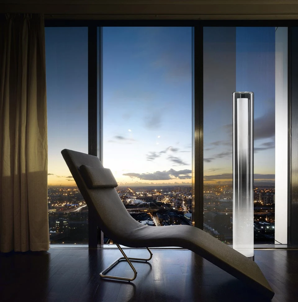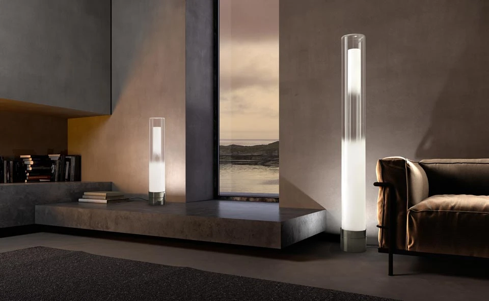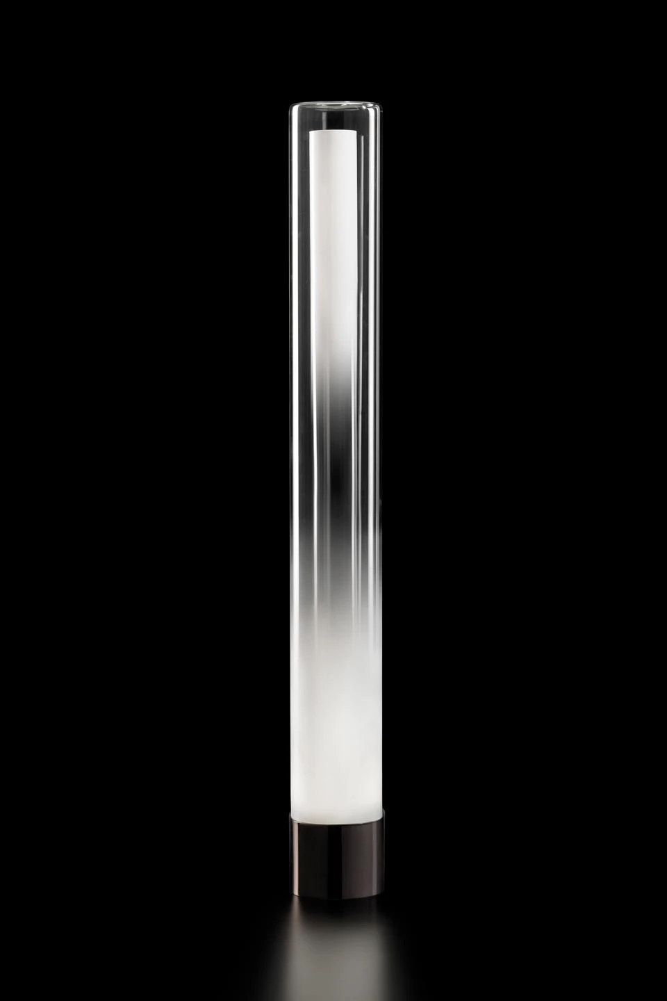 Le lampadaire Gradient, bien que résolument contemporaine, fait référence au design italien des années 70, avec son diffuseur fait de deux cylindres de verre emboités l’un dans l’autre, un jeu de transparence et un socle de métal finition gris acier. Le lampadaire est composé d’un premier cylindre dans lequel est logé un second cylindre de verre, les deux sont fait d’un dégradé de blanc vers le transparent, ce qui crée un superbe effet de transparence et d’opacité. Les lignes épurées et le verre est mis en valeur par la simplicité du socle dans la continuité des cylindres, réalisé en métal avec une belle finition canon de fusil. Le modèle est illuminé par un module LED logé dans le lampadaire. La maison Italamp propose une diversité de collections qui mettent (littéralement !) en lumière et développent le riche héritage artisanal italien en matière de luminaire, avec la recherche de matériaux nobles et le mariage du classique et du contemporain en d’uniques designs.