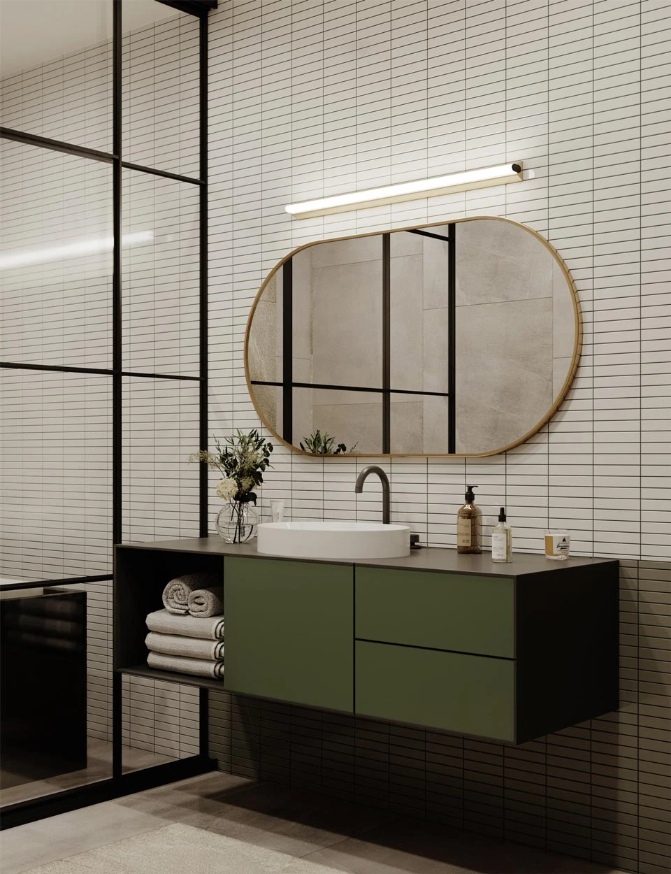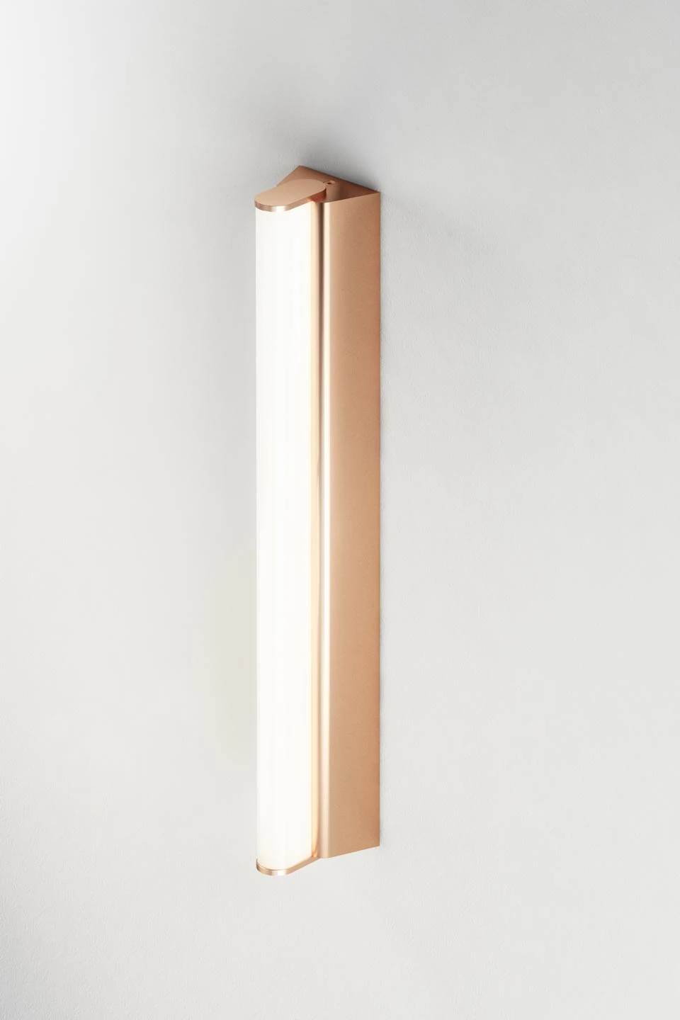 IP Metrop est un éclairage de salle de bain minimaliste en cuivre satiné. Il est constitué d’un tube en polycarbonate satiné blanc de très belle qualité muni d’un éclairage LED. C’est un luminaire à poser verticalement ou horizontalement autour d’un miroir. La protection IP44 permet son installation en toute sécurité dans une salle de bain.