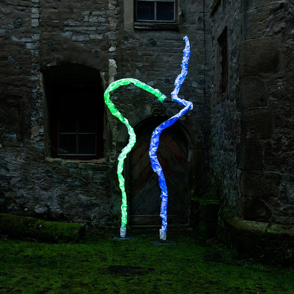 Joshua Outdoor RGB est un lampadaire d’extérieur protection IP44 fait en une matière synthétique non tissée semblable à du papier froissé, posée sur un support flexible pouvant prendre toute les formes. Le diffuseur est équipé d’ ampoules Led RGB à la palette multicolore + blanc. Son large socle en inox apporte une grande stabilité à l’ensemble. Le corps, long de 430cm est bordé d’une surpiqure noire, le câble d’alimentation, long de 600cm est en tissu noir coordonné. Le lampadiare est livré avec sa télécommande qui sert à la fois d’interrupteur, de variateur d’intensité et variateur de couleurs. Ce modèle existe également en LED blanches sous la référence 15090265.