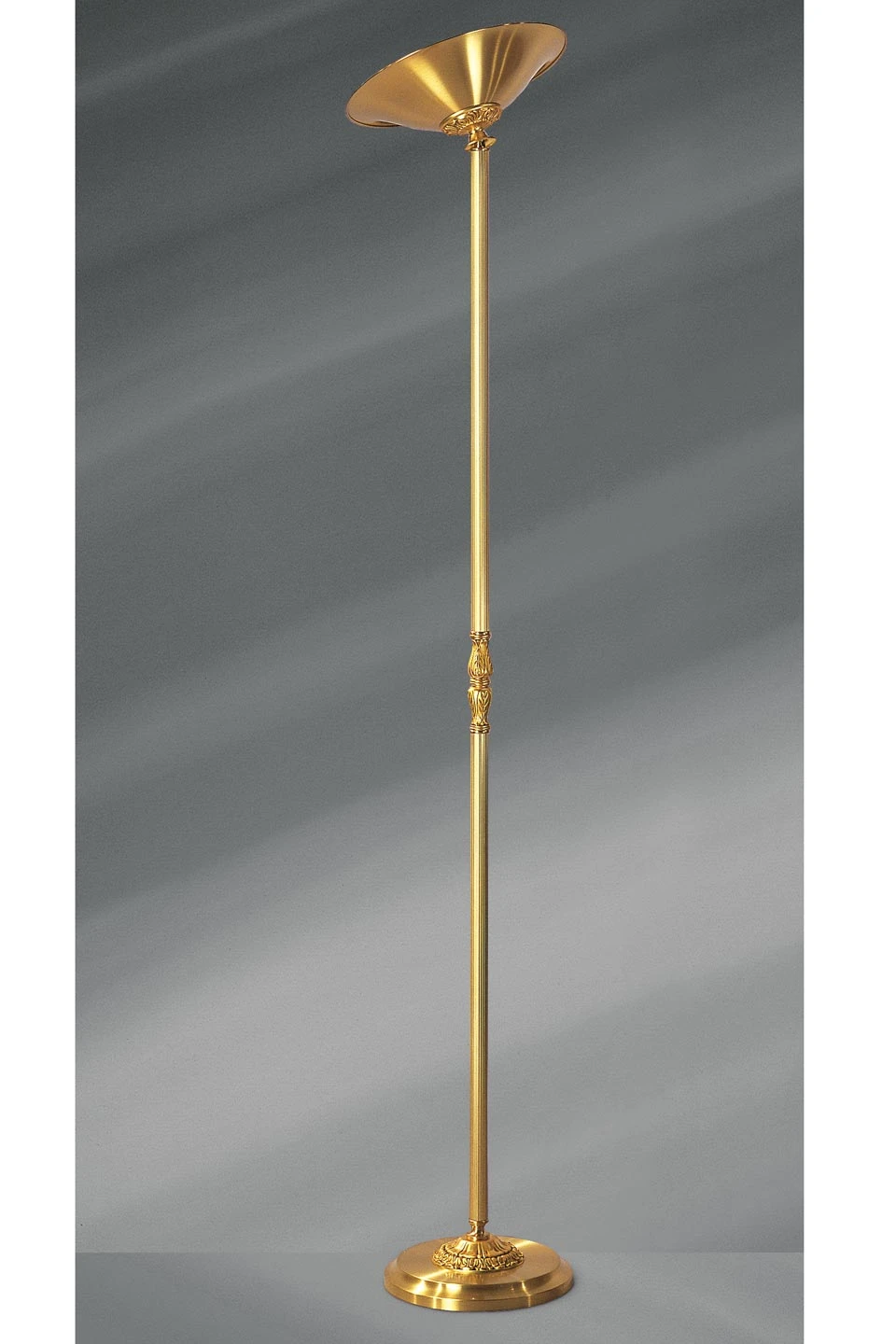 Ce lampadaire en bronze Louis XV fournit un excellent éclairage, il accepte un tube halogène de 300W maximum. La lumière est projetée vers le haut, on obtient une excellente lumière d’ambiance. Fabriqué en bronze massif, ce lampadaire a reçu une patine vieil or. Le support, rond et massif, supporte un fin pied orné à mi-hauteur d’un élégant motif de style Louis XV. Le réflecteur conique est orientable, il est monté sur rotule. Ce lampadaire est fabriqué à la main dans les ateliers français du fabricant, en utilisant les méthodes les plus traditionnelles.