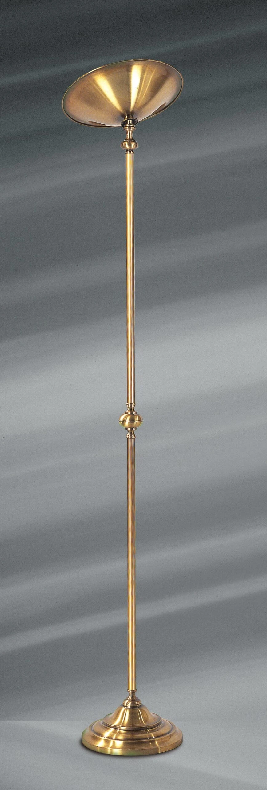 Dessiné dans le respect du style hollandais, ce lampadaire en laiton patiné permet la création d’un puissant éclairage indirect, tout en assurant une intégration harmonieuse dans un univers décoratif sophistiqué. Ce lampadaire est constitué d’un socle massif de forme conique, supportant un fin pied ornée en partie médiane d’une boule décorative, et supportant dans sa partie supérieure la tête d’éclairage, qui comprend un diffuseur de forme conique évasée. L’extrémité supérieure du pied est également décorée d’une boule métallique assortie. Ce lampadaire est construit de façon artisanale en laiton patiné. Il est équipé d’une ampoule halogène de 500W et d’un variateur à pied. Voir aussi le lampadaire de style hollandais muni d’un abat-jour référence 12020120.