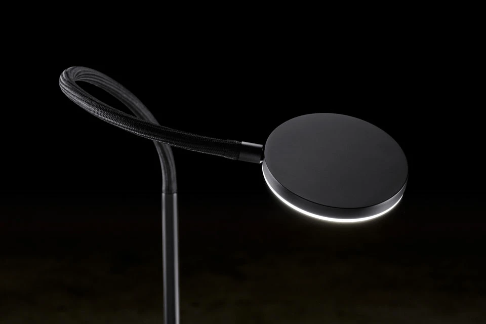Le lampadaire Nova Flex noir séduit par son design contemporain élégant et minimaliste et par l’aspect pratique des possibilités d’orientation de la lumière qu’il offre grâce à son bras flexible noir et son éclairage LED intégré. Le modèle se présente sous la forme d’un lampadaire simple avec socle rond et pied droit en aluminium peint noir, surmonté d’un bras flexible gainé de textile noir qui permet d’orienter la lumière produite par le module LED intégré dans un disque aluminium mat. Nova Flex est équipé d’un variateur de lumière intégré qui permet de bénéficier de la puissance de l’éclairage LED tout en pouvant créer une atmosphère plus tamisée. Non seulement réputée pour la qualité de ses luminaires fabriqués du métal brut au produit fini en Allemagne, la maison Holkoetter, fondée en 1964, concentre également son expertise sur le développement d’un éclairage LED précis, durable et tendant vers le vertueux en terme environnemental.