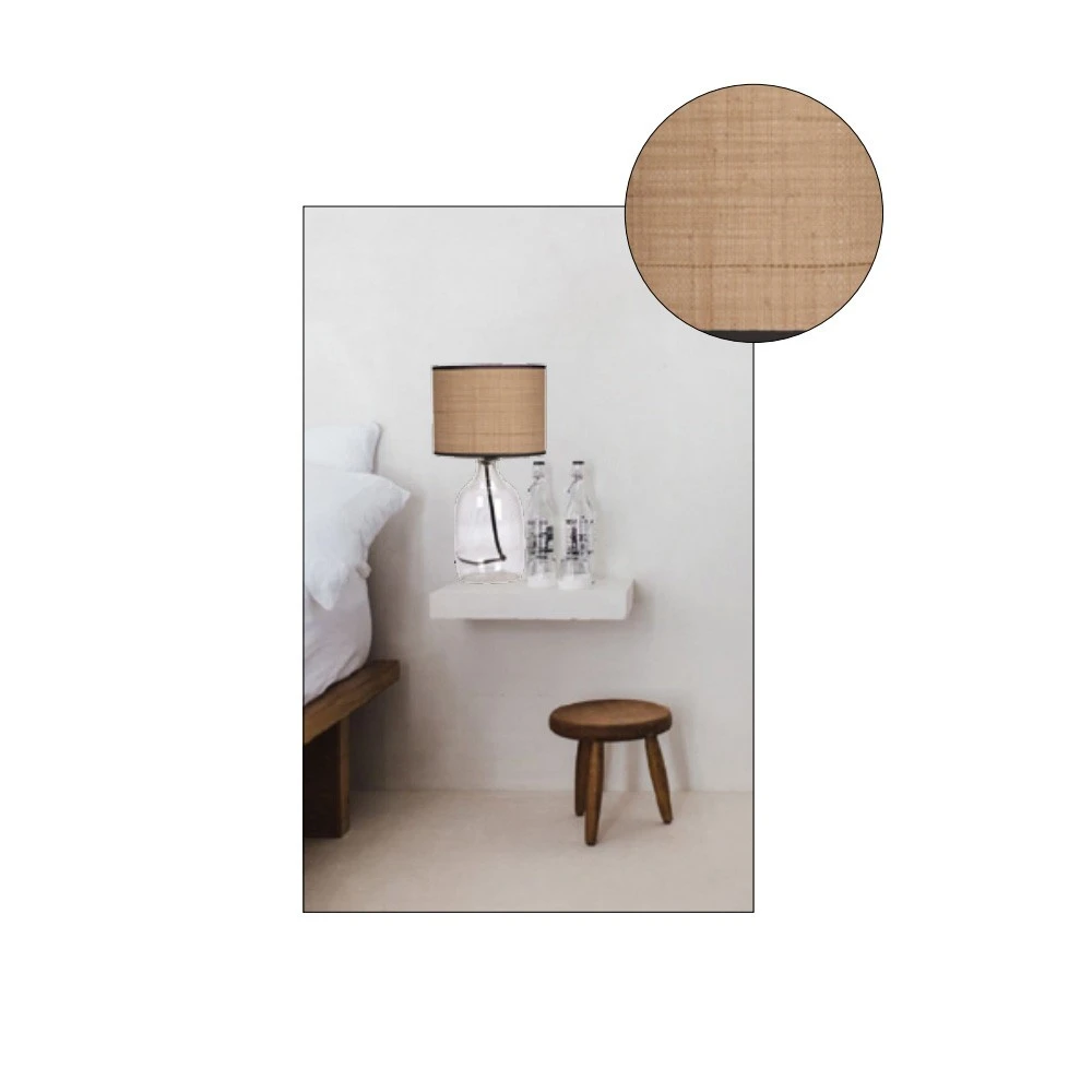 Lampe avec base verre transparent et Abat-jour raphia naturel T. M
