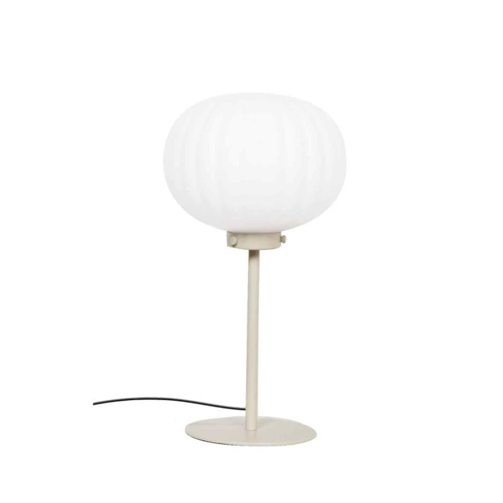 Matière : socle et pied métal beige, globe en verre finition satinée
