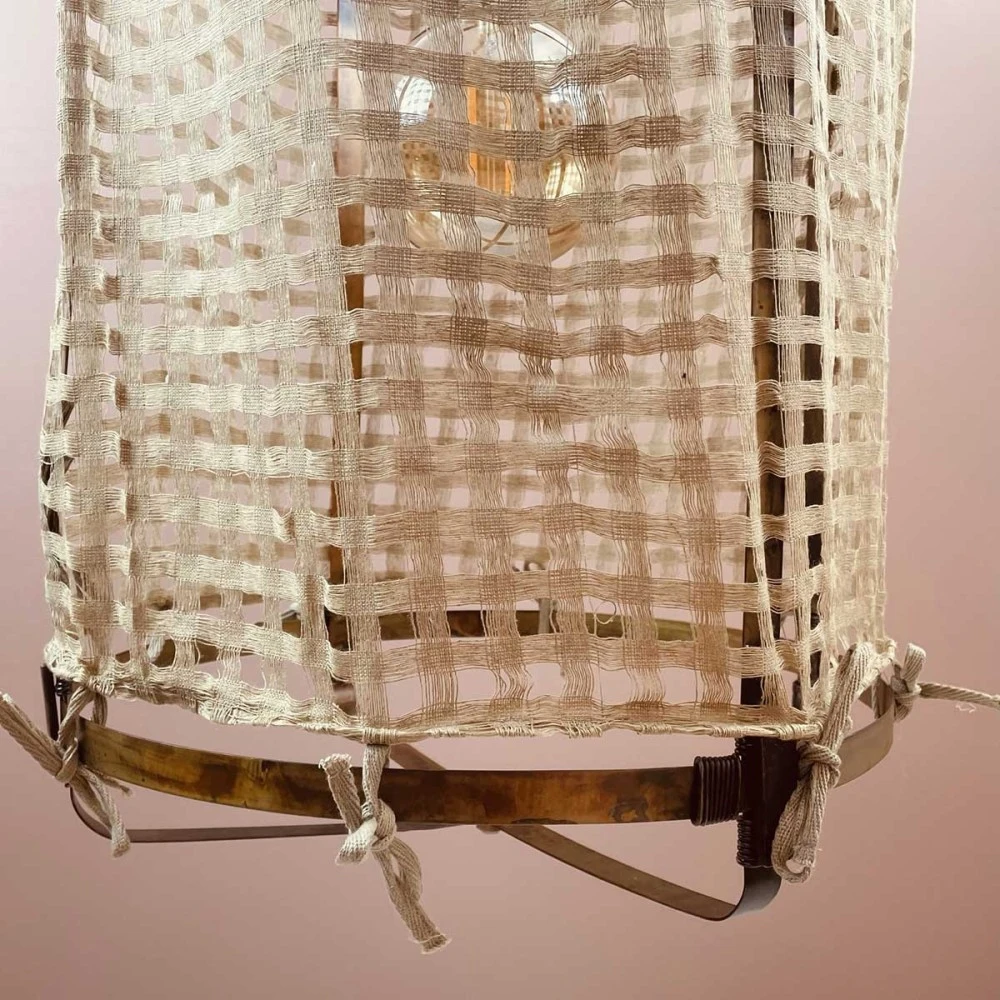 Luminaire en métal coloris laiton rustique et coton beige esprit bohème épuré