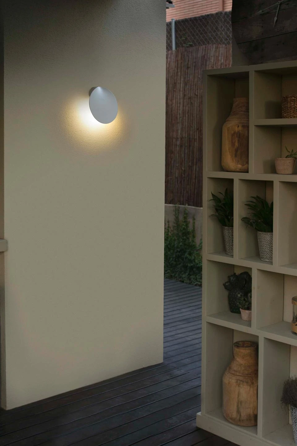 Lotus est un très jolie petite applique d’extérieur aux courbes harmonieuses dont le nom tient à sa forme de grande pétale de lotus ou de nénuphar. Celle-ci, orientable vers le sol ou vers le ciel est en aluminium blanc pour ce modèle. L’applique travaille une lumière indirecte qui se reflète sur le mur entre celui-ci et la pétale d’aluminium. Equipée d’une protection IP65, elle convient très bien aux conditions extérieur et résiste aux intempéries.