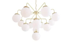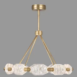 Lustre Aux Dix Cristaux Taillés Et Structure à La Feuille D’or