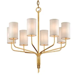 Lustre à 2 étages En Cristal Transparent, Abat-jour Cylindriques Beige