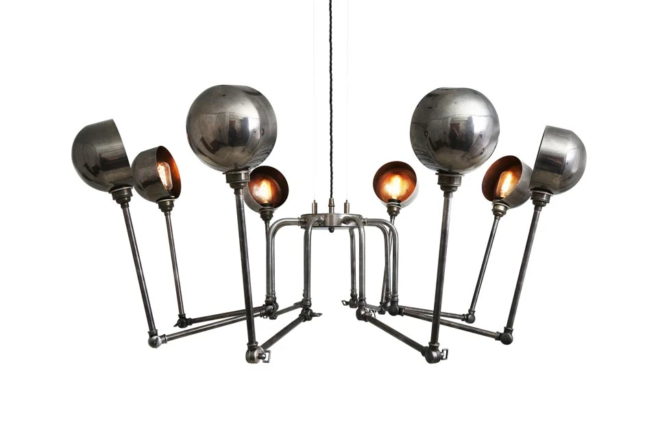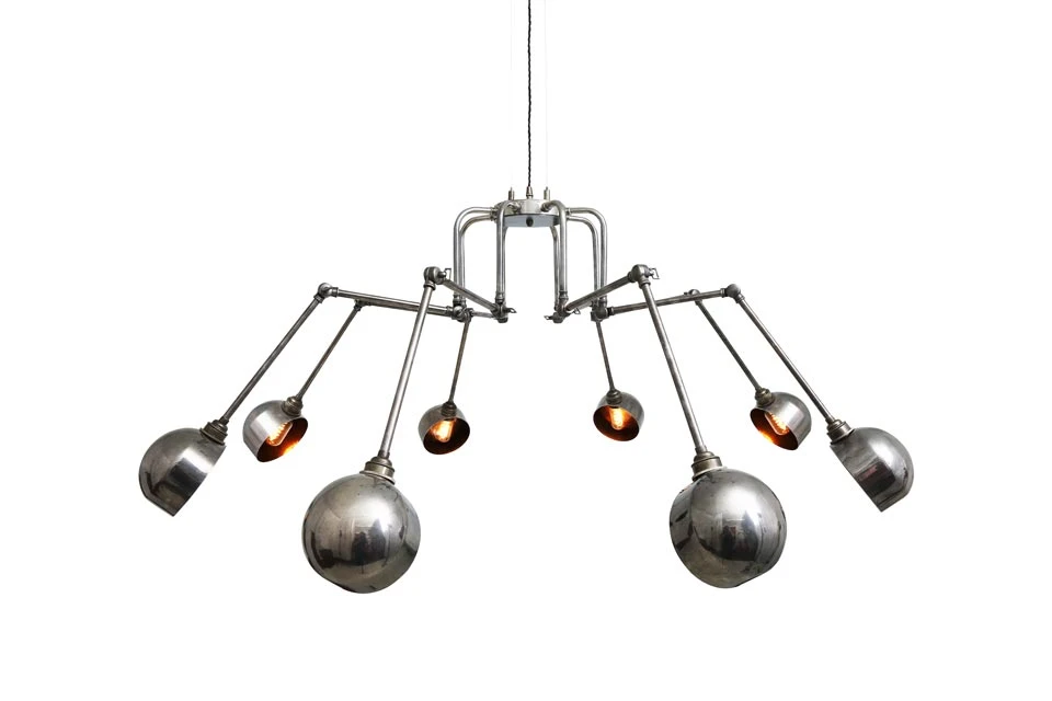 De style industriel et articulé, ce lustre San Jose en argent antique munie de 8 lumières, donne une impression de mouvement. Les 8 branches sont articulées en deux points avec de petites molettes afin de permettre à votre créativité et à vos envies d’être réalisées. Les réflecteurs en formes de demi-sphère dirige la lumière. En les déplaçant vous pourrez donc réaliser des effets d’ombres, mais également, illuminer plus ou moins votre pièce ou encore décider des espaces à éclairer en éclairage direct ou indirect. Ce lustre s’adaptera à de nombreux espaces car la hauteur et la largeur peuvent être réglées. Son créateur Mike Treanor crée de nouveaux éclairages, qui seront les pièces maîtresses de votre intérieur qu’il soit vintage, industriel ou contemporain. Existe également en laiton antique sous la référence 16030227.