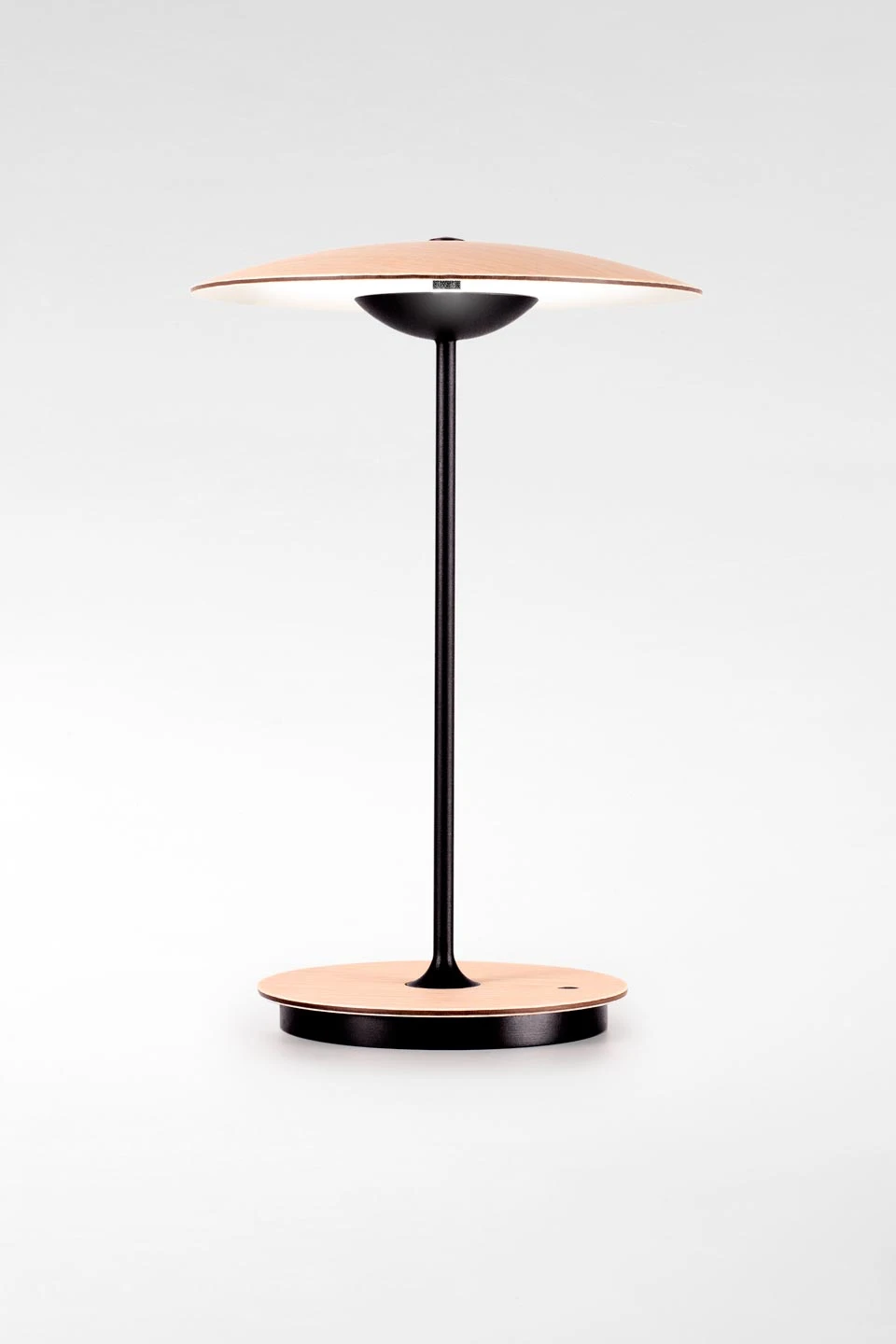 Avec sa lampe sans fil Ginger en bois clair, Joan Gaspar, son concepteur touche à un degré de perfection extrême. Perfection du dessin avec ces dômes qui se répondent, l’un en bois, l’autre en métal. Perfection de la maitrise des matières sachant que si le bois est l’allié parfait de la lumière intimiste, il est un matériau très compliqué à manipuler. Perfection aussi de la justesse et de la douceur extrême de la diffusion de la lumière. La tige parfaite et discrête, en métal noir, permet au disque de bois clair de faire échos au dôme de bois clair. Ce disque de bois fin est mis en valeur par un socle en métal noir qui disparait visuellement. Son autonomie est de 5h en pleine puissance et jusqu’à 20h à 25% de puissance. Elle se recharge complètement en 10 heures sur le secteur.