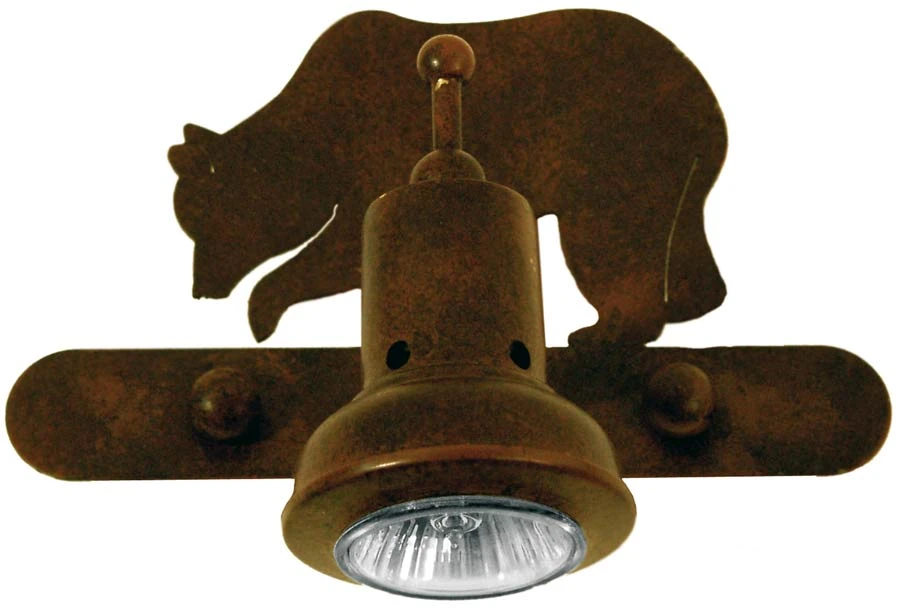 Applique finition métal rouillé motif ours 1 spot dichroïque H 17cm l 19 cm P15cm. Source de lumière: ampoule GU10 ou GUZ10 50W maximum (A acheter séparément)