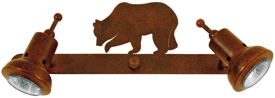 Applique finition métal rouillé motif ours 2 spots dichroïques H 19cm l 35 cm P15cm. Source de lumière: 2 ampoules GU10 ou GUZ10 50W maximum (ampoules à acheter séparément)