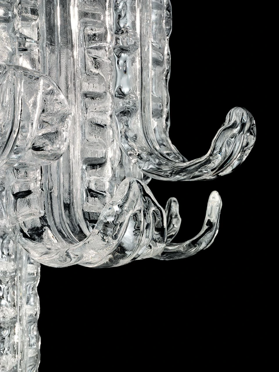 New Felci est un impressionnant lustre 12 lumières entièrement en cristal vénitien transparent et touches de métal doré, dont le design est d’inspiration Art Déco. Le luminaire forme une cascade faite d’un cristal de haute facture façonné pour former de délicate et voluptueuses feuilles typiques de l’esthétique vénitienne. Ciselée à la perfection, la partie en cristal est construite autour d’une légère structure en métal dont la finition or galvanisé transparaît par touches, et visible sur le cône de plafond, insistant sur une élégance certaine, évocation d’un style tout droit sorti des Années Folles. Barovier & Toso, issue d’une longue lignée de maîtres verriers qui remonte au 14ème siècle, perpétue la tradition et les savoir-faire familiaux ainsi que la place maîtresse de la maison, tout en ayant introduit une dimension moderniste et une esthétique innovante dans la discipline du travail du verre de Murano. Existe en plusieurs coloris, nous consulter pour ces options.