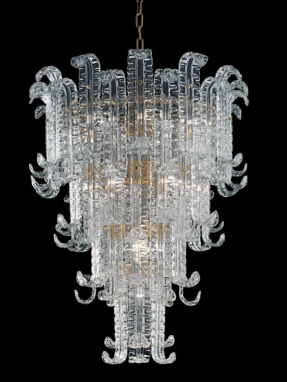 La collection comprend également deux autres lustres de 18 ou 30 lumières sous la référence 21070176, ainsi qu’un plafonnier sous la référence 21070206, et une applique sous la référence