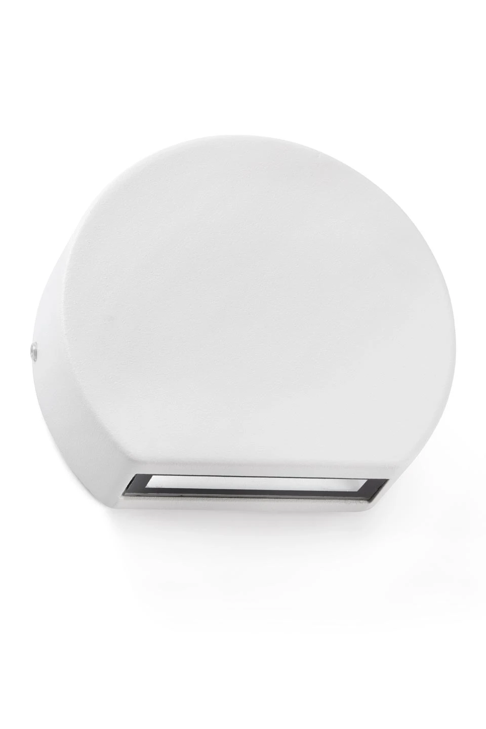 Une petite balise murale d’extérieur minimaliste au design rond, c’est la série Pill. Le modèle présenté est composé d’un disque en aluminium blanc, coupé de sa partie inférieur pour encastre un module LED en éclairage direct vers le sol, derrière un diffuseur en verre. De faible profondeur et équipée d’une protection IP54, elle est idéale pour éclairer les abord d’une maison.
