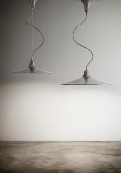 Sassmaor superbe suspension contemporaine, d’inspiration industriel chic, aux formes harmonieuses et épurées et à l’éclairage LED puissant. Entièrement réalisée en aluminium vieilli pour donner cette patine particulière, elle se compose d’un large réflecteur circulaire très évasé, du sommet duquel court un câble en spirale autour d’un câble inox fin presque transparent qui fixe le luminaire au cône de plafond qui fait écho à la forme du réflecteur. Le luminaire peut pivoter légèrement sur un axe vertical pour orienter la lumière, optimisant ses capacité d’éclairage déjà larges grâce à son format évasé. Le modèle est idéal pour illuminer de grands espaces et de grandes tablées. La maison italienne Aldo Bernardi développe des luminaires intemporels et de grande qualité, en s’inspirant de techniques traditionnelles de fabrication.