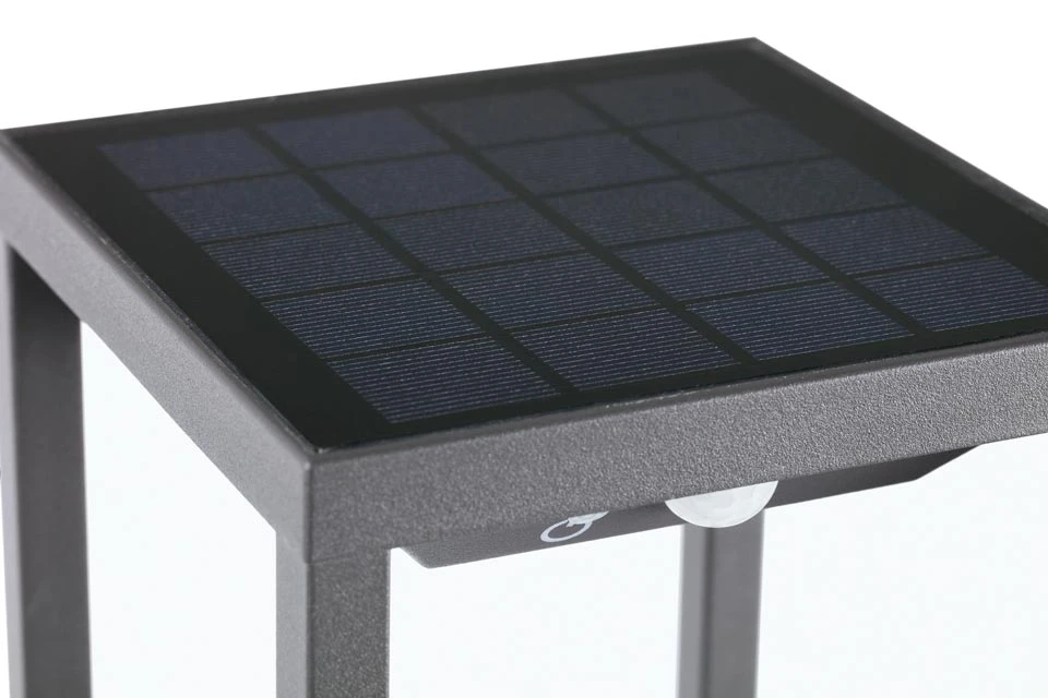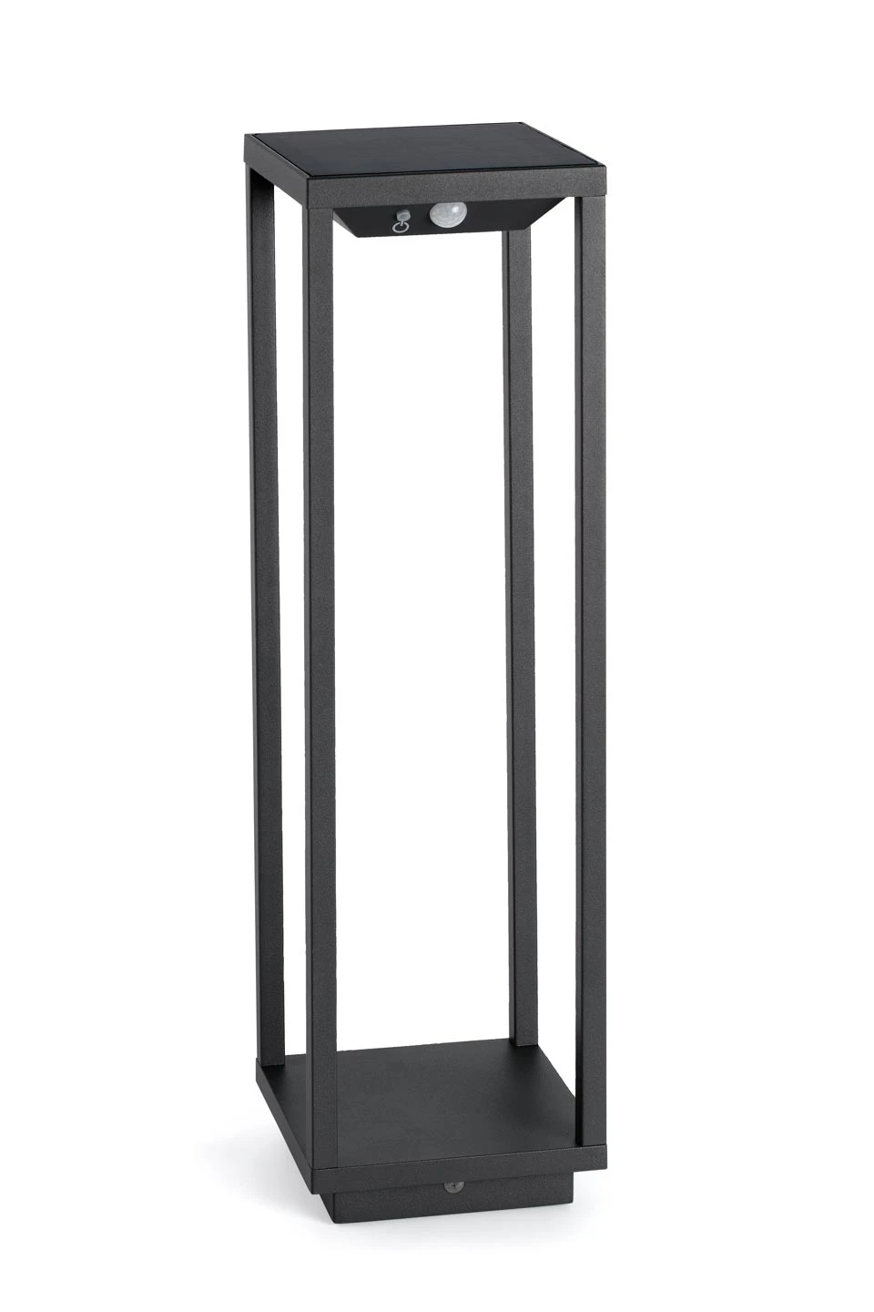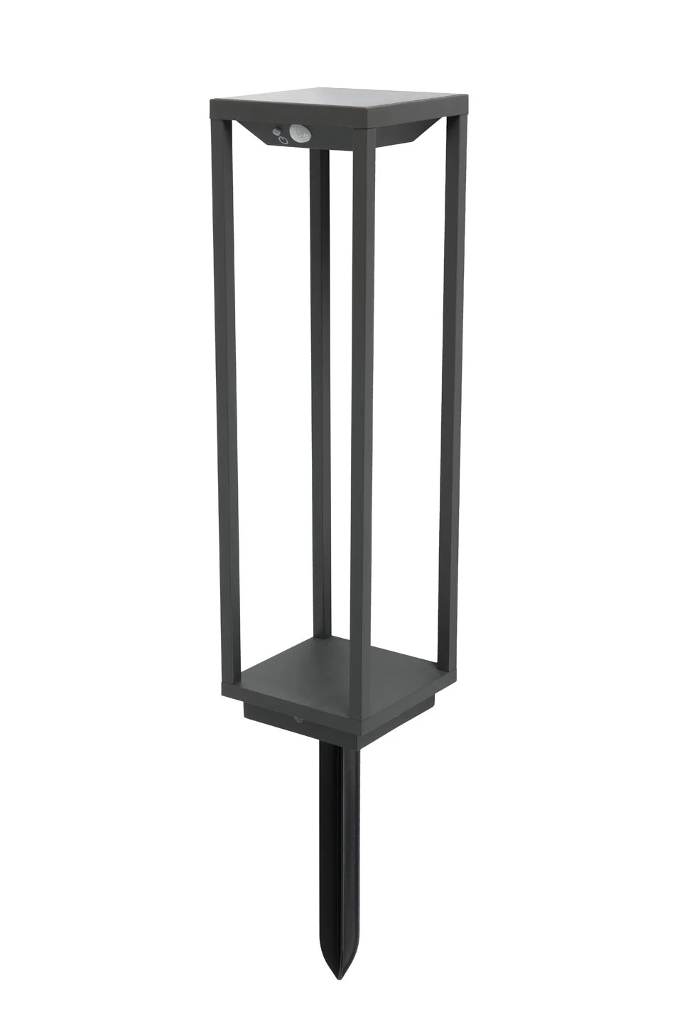 Très pratique et design Saura est une lampe d’extérieur qui évoque la forme épurée d’une lanterne posée sur votre terrasse ou au bord de votre piscine. Sans fil, à rechargement solaire et sur batterie Lithium, elle a une autonomie de 2.5 heures d’éclairage pour un temps de rechargement de 6/8heures. Elle est également équipée d’un détecteur de mouvement à 6 mètres, idéal pour éclairer momentanément un coin sombre ou un obstacle. Elle est composée de 4 fines sections carrées d’aluminium fixées sur 2 plaques carrées également en aluminium. L’ensemble est gris sombre, et le diffuseur en polycarbonate est placé à l’intérieur de la face supérieur, afin de produire une lumière indirecte sur la structure de la lampe. La protection IP54 garantie au modèle une parfaite résistance aux intempéries. Elle est livrée avec un piquet pour être placée dans un jardin si besoin.