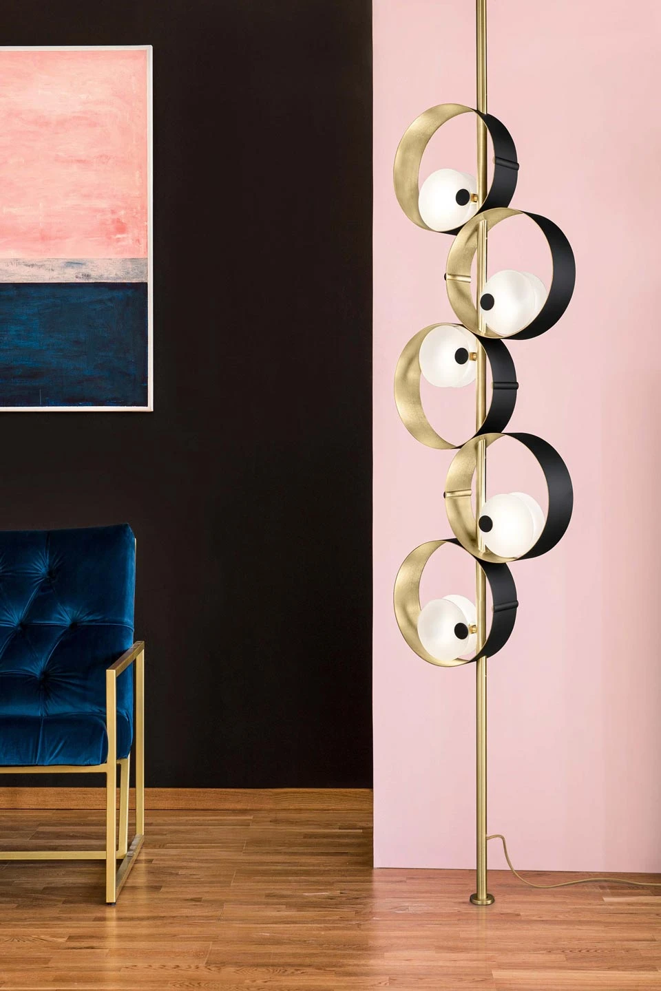 Sound Lampadaire 5 Lumières Noir Et Or