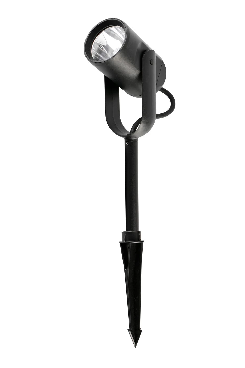 Ce spot d’extérieur au design contemporain pour le jardin est monté sur une petite tige en pointe pour pouvoir être plantée où vous le désirez. Le spot, court est monté sur un U articulé qui lui permet de pivoter de haut en bas et est muni d’un éclairage LED puissant et à faisceau étroit 25°. L’ensemble est entièrement en aluminium noir, il est ainsi très discret, et la protection IP65 le garanti résistant aux intempéries.