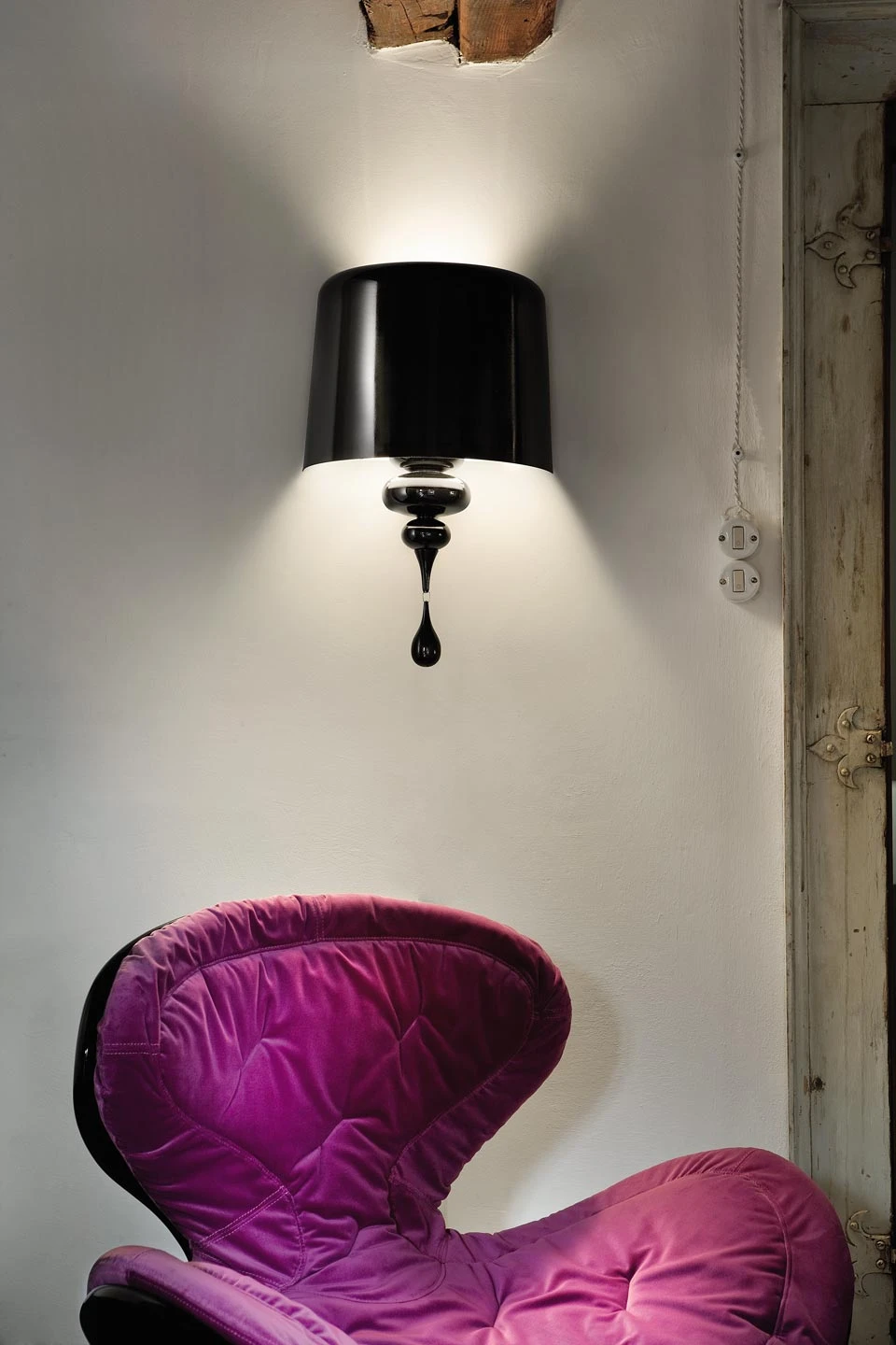Une allure élégante pour cette très grande applique Eva en résine et polyuréthane laqué noir. Elle est munie d’un abat-jour en demi-lune en aluminium verni noir, de forme circulaire et à l’intérieur blanc, et d’une tige droite présentant une composition de deux moulures de forme ronde et d’une autre en forme de goutte s’étirant vers le bas de la tige terminée par une pampille. Dessiné par Fly Design Studio, ce luminaire est fabriqué avec des matériaux de haute qualité dans les ateliers Masiero en Italie. Un lustre dix lumières blanc est proposé sous la référence 16020225 et une applique blanche sous la référence 16020234.